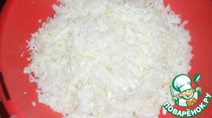 2. Капусту натираем на терке, так она быстрее пропечется. Солим, перемешиваем.