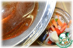 Дать постоять еще минут 15-20. Отлить немного уксусной воды для приготовления маринада.