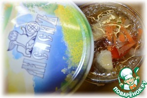 И потом все содержимое лотка соусом заливаем. Желательно, чтобы все содержимое соусом скрылось.