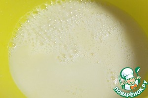 Продолжая взбивать, добавляем растительное масло, сыворотку.