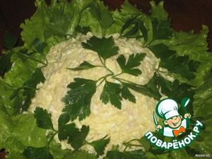 Салат уложить на листья салата горкой, украсить петрушкой.