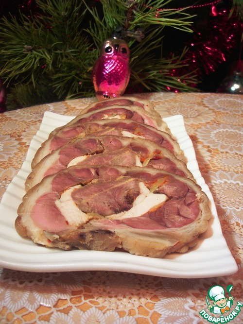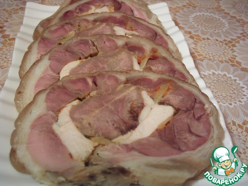 Рецепт «Рулька свиная, фаршированная языком и курицей»: