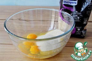 Миксером взбить яйца с ванильным сахаром и сахаром тростниковым ТМ Мистраль. -
