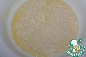 Залить дрожжи теплой водой. Оставить на 15 минут. Внести соль, сахар, оливковое масло, натертую на крупной терке моцареллу.