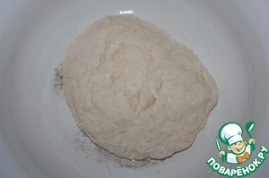 Внести муку (сколько возьмет тесто). Вымесить эластичное тесто.