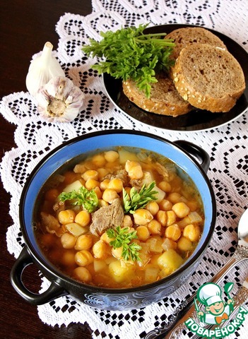 Неимоверно вкусный суп с бараниной, нутом, картофелем и т. д. Ароматный, густой, наваристый. По-Московски, потому что увидела рецепт на упаковке с нутом и он разительно отличался от тех, что позже прочитала на Поварёнке. Поскольку получилось очень вкусно, представляю свой вариант Вам!