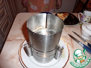 С помощью литровой банки укладываем в ветчинницу пакет для запекания, собираем ветчинницу.