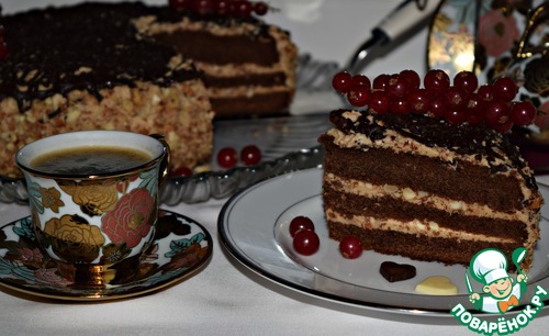 Шоколадные коржи, покрытые кофейным кремом с орехами-истинное наслаждение для сладкоежек. Прекрасный десерт без лишних затрат-отлично подходит и к чаепитию, и к праздничному столу.