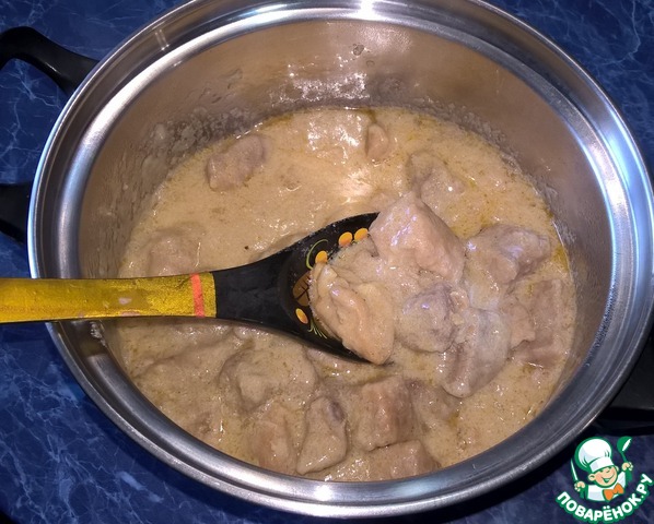 Размягченные корки убираем и добавляем 2 ст. л. сметаны и тушим до готовности мяса.