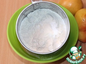 Смешиваем пшеничную муку и разрыхлитель, просеем через сито.