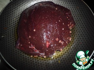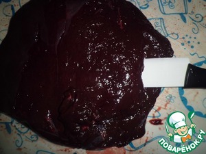 Печень промываем, очищаем и делаем внутренний разрез на всю длину и ширину, получается карман, который потом мы будем фаршировать.