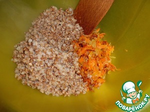 Смешиваем с гречневой кашей. Солим, перчим. -