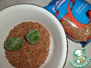 • Гречневую крупу от "Мистраль" залить стаканом кипятка, туда же сразу отправить шпинат (у меня он уже измельчен).