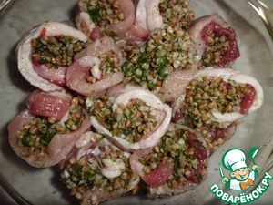 Мясные "розы", фаршированные гречневой крупой