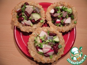 Почему бы не подать салат из селёдочки и свежих овощей в тарталетках из черного хлеба! Вкусно и очень необычно!