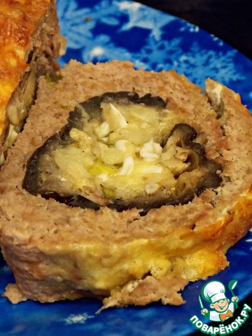 Рецепт «Фаршированный баклажан в мясной шубке»:
