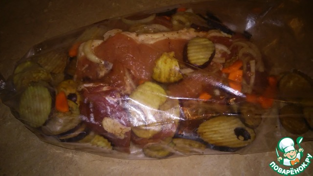 Отправляем рукав в духовку часа на 1,5 - 2, температура 180 градусов (ориентируетесь по своей духовке). В рукаве делаем несколько маленьких надрезов. Через час по кухне плывет потрясающий аромат... |