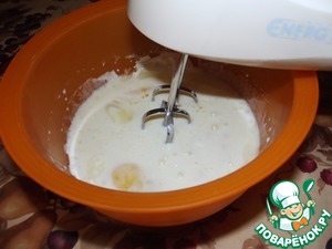 Замесить тесто из всех компонентов (просто сложить все продукты в одну миску и взбить миксером). Тесто получается очень жидким.