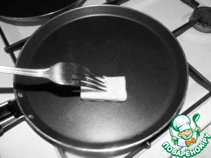 Раскалить сковороду и смазать перед выпечкой кусочком не соленого сала (один раз смазать и хоть сколько блинов пеки... ни один не прилипнет).