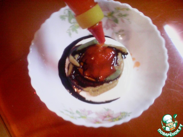 4) на эту овощную подушку выкладываем отбивную, очистив ее от лишнего маринада, ; -