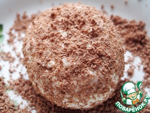 Аккуратно защипляем края и формируем шары, которые обваливаем в натертом шоколаде. Оставляем в холодильнике на 20 минут (не обязательно).