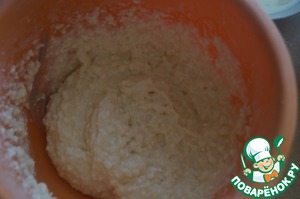 Для начинки: творог взбить вместе с сахаром и яйцами. Добавить крахмал и хорошо перемешать.