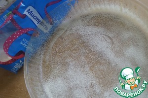 Форму для выпечки (диаметр у меня 26 см) смазать тонким слоем растительного масла и присыпать манной крупой.