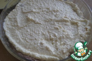 На творог выложить оставшееся тесто и аккуратно разровнять. Выпекать в разогретой до 180 гр духовке около 50 минут.