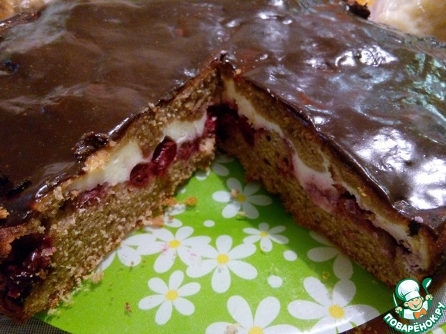 Рецепт «Пирог вишневый с творожной прослойкой»: