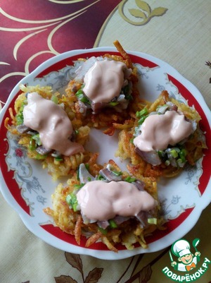 Замечательная закуска для любителей селедочки и драников. Рецепт позаимствовала из журнала.