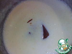 Снять с огня и добавить поломанный шоколад. Тщательно перемешать и накрыть пленкой. Оставить остужаться.