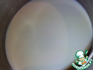 Молоко вылить в сотейник и довести до кипения. Влить 1-2 поварешки горячего молока в яичную смесь и размешать до полного растворения сахара. Затем яично-молочную смесь влить тонкой струйкой обратно в сотейник с молоком. Добавить муку и варить 2-3 минуты до загустения.