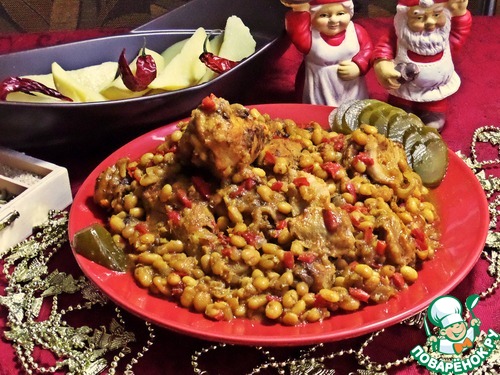 Для тех, кто любит пряную курочку. Идея готовить и подать с фасолью (нутом)-от Джейми Оливера, с небольшими моими дополнениями. Сытное зимнее блюдо, хорошо подать в семейном кругу на Рождество или просто на ужин.
