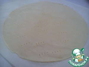 Делим тесто на 10-12 кусочков. Раскатываем каждый максимально тонко на пергаменте. Обрезаем в форме круга.