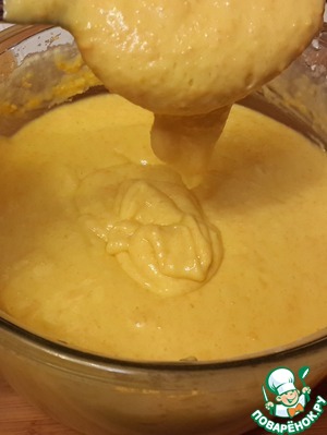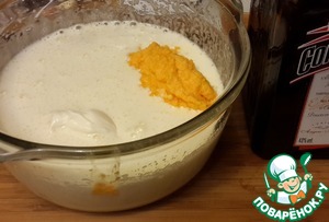 Добавьте к тесту морковно-мандариновую массу, майонез и ликер Куантро (или любой другой цитрусовый ликер), хорошо перемешайте.