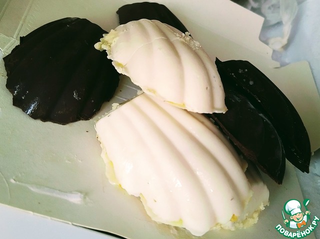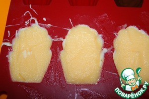 Заполнить полость мадлен курдом (ссылку на рецепт я дом ниже) и поставить в морозилку на 15 минут.