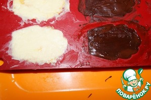 Нанести шоколад 80 г в формочки так же, как и белый. -