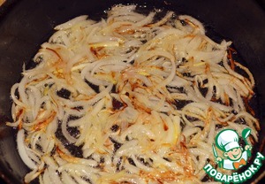 Лук обжариваем на растительном масле, до золотистости (обожаю такой лучок!)