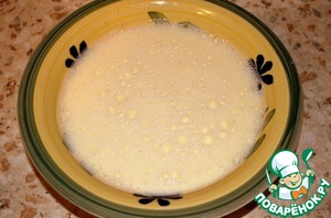 Яйца взбить венчиком с молочком, немного посолить и доб. приправу.
