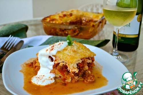 Рецепт «Лазанья из капусты с мясом и грибами»: