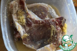 Выложить подготовленное мясо в контейнер и залить маринадом.