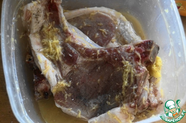 Мясо промыть, обсушить. Натереть солью и перцем.