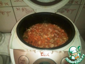 Поместить все ингридиенты в мультиварку, посолить, поперчить по вкусу, добаить специи, залить бульоном из сельдерея (можно и без него) и поставить на режим "Тушение" на час