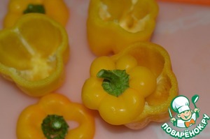 2. У перцев срезать основание, семена и перегородки вынуть.