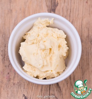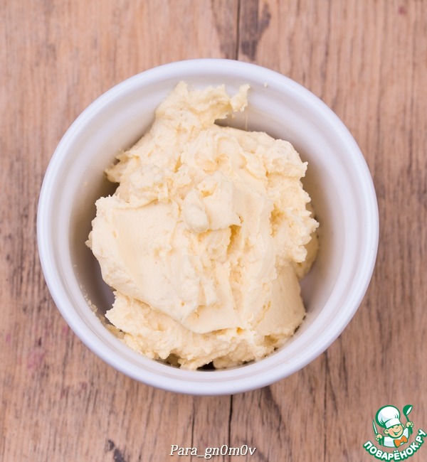 2. Отварить яйца вкрутую и извлечь желток. Белки убрать, они нам не понадобятся. Желтки раскрошить, добавить майонез и взбить миксером до кремообразного состояния. Крем должен получиться густой, не растекаться, поэтому количество майонеза регулируйте в зависимости от консистенции крема. Лучше добавлять его понемногу, пока не добьетесь нужной консистенции.
