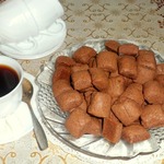По вкусу чем-то напоминает ирис в плитке, которым меня баловали иногда в детстве.