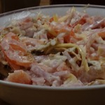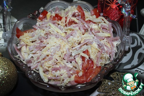 Салат перемешиваем перед употреблением, чтобы помидор не дал сок.