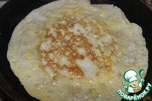 Сырые яйца перемешиваем венчиком и жарим с двух сторон до легкой золотистости.