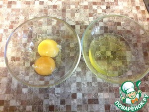 Яйца разделите аккуратно на белки и желтки.
