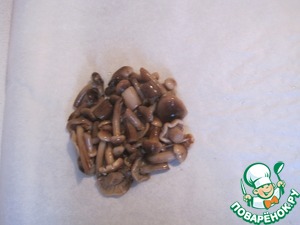 Собираем запеканку. 1 слой грибы (у меня опята маринованные) кладем в виде круга или овала.